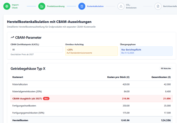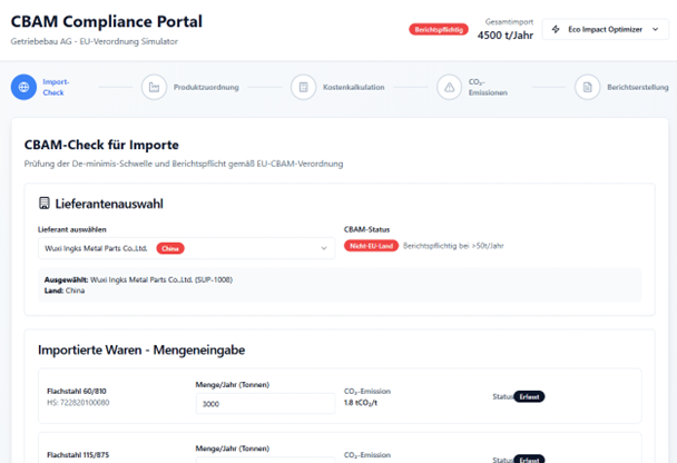 Verlässliche CBAM-Berichte als Voraussetzung für kontinuierliche Importfähigkeit und stabile Handelsbeziehungen. Mitwachsende Lösung, die jederzeit auf neue Produktgruppen anwendbar ist.